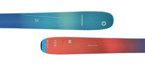 The Blizzard Sheeva 10 falls right in the middle if the Sheeva family line up, and are designed for ladies who love to explore the whole mountain. At 102 mm underfoot, these skis are directly in that sweet spot for an eastern pow day ski, or a western daily driver, especially for more adventurous skiers. They simply blur the line between all-mountain and freeride. You don’t have to be an advanced or an expert skier to enjoy the float, maneuverability, and well-roundedness of the Sheeva 10, but skiers with a strong skill set will certainly be able to take this ski to the highest levels. It makes a great ski for someone who doesn’t want a ski with two sheets of metal, but who still wants some edge grip and stability underfoot. In addition, the carbon in the tips and tails keeps them strong yet light, allowing for low swing weight and increased maneuverability. Blizzard’s Carbon Flipcore D.R.T. technology paired with a progressive shape and rocker profile deliver a confidence-inspiring, elevated skiing experience. The end result is a ski that will help you ski better and have more fun while seeking out those special places on mountain. The Blizzard Sheeva 10 answers all the needs of lady freeskiers.