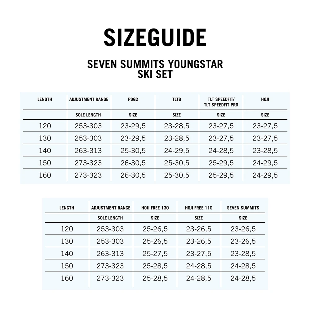 A completely pre-mounted and perfectly tuned ski touring set consisting of the Seven Summits Youngstar Ski, the ST Rotation 7 Binding, and the Seven Summits Youngstar Skins. With this set, we have focused on our next generation: The new Seven Summits Youngstar Ski is the all-rounder for our kids.