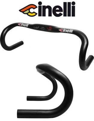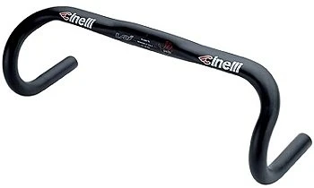 Wiredrawn and shaped 6061-T6 aluminum Aero-foil, ergo-flat top section with Variable Radius Concept (VRC), round profile drops with extended ends for added positioning Under-the-bar cable routing for STI/Ergopower levers Matte black finish with white/red Cinelli & Vai graphics 290g @ 42cm: all measurements are center-to-centerThe palm bar is made in AL 6061 T6 alloy and is double butted. The wide flat top design makes the grip in the high position safe and comfortable. The round drops allow an effortless reach of the brake levers and offer more possibilites for the hands positioning. A special groove under the handlebar keeps the cables firm in place.