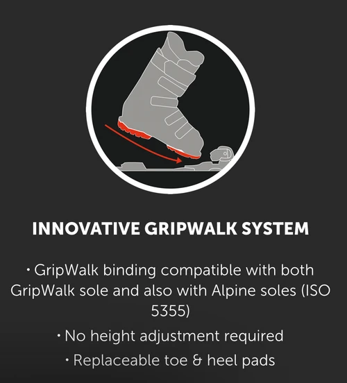 What good is the best sole in the world if it is not compatible with your equipment? This is why more and more winter sport brands are now choosing innovative GripWalk technology. This provides you with the widest possible selection of ski bindings and ski boots, which are ready-fitted with GripWalk technology or can be retrofitted with GripWalk soles. Just look for the official GripWalk logo to ensure that your equipment makes a perfect connection with you! Because if it says GripWalk on it, it’s got GripWalk in it.