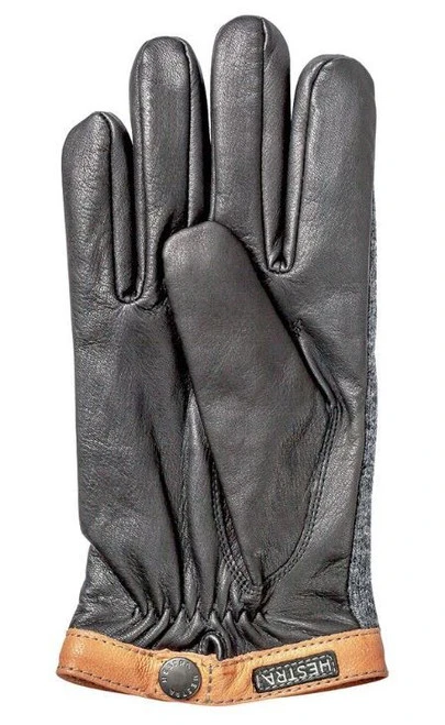 Glove in deerskin and wool tricot with warm wool lining. Vegetable tanned goat leather on cuff.