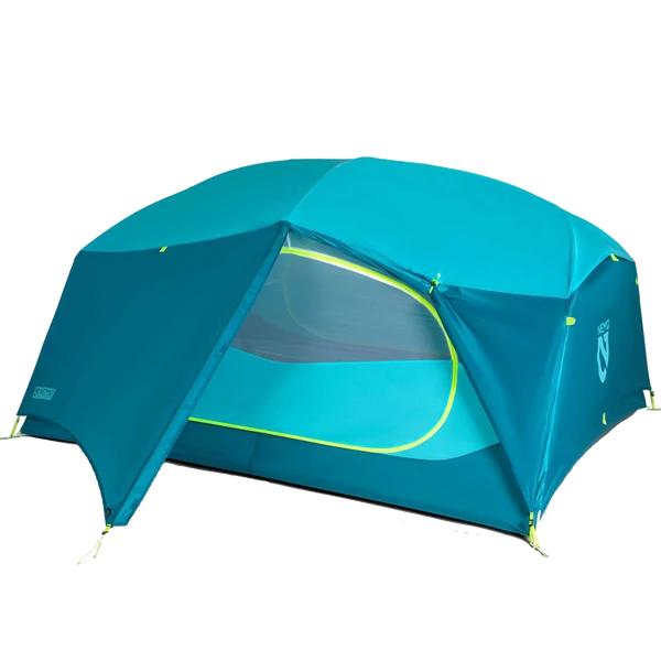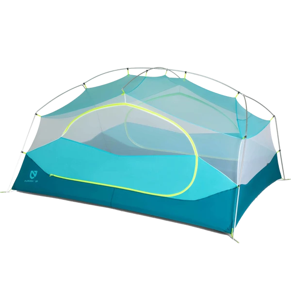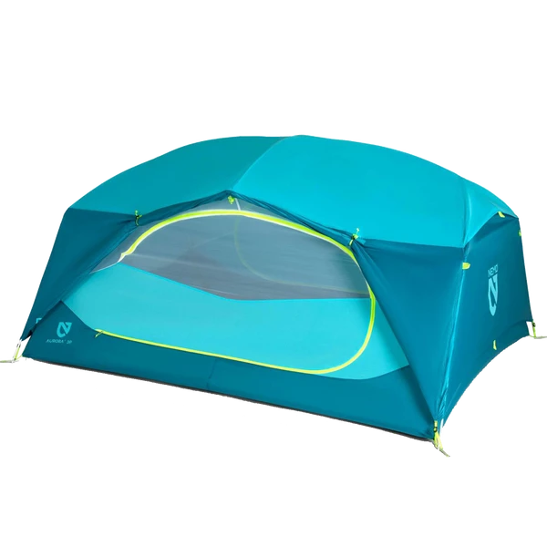 Featuring vibrant color, angular patterning reminiscent of mountainscapes, and a competitive price, the new Aurora screams fun and livability. Steep side walls provide for massive interior volume, while two doors and two vestibules allow for plenty of room for spreading out and storing gear.