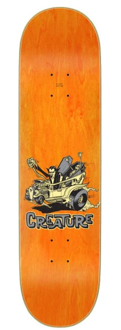 Creature Skateboards Monster Mobile deck featuring spot gloss graphic on 7 ply northern birch hardwood deck pressed using specially designed crosslinked glue, creating a responsive and durable deck at an affordable price.