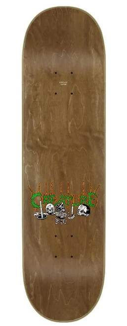 It was only a matter of time before @FuneralFrench got his claws on a Raffo graphic. Introducing Peter Raffin’s Eternal Rites Pro 1-off deck on our coveted 8.375″ shape. The grim brown-stained bottom laminate really ties this ceremonious graphic together, wouldn’t you say? In the name of Creature and Peter Raffin, let us pray. Raffo’s “Eternal rites” on the streets, in shops, and in dank caves now on 7 ply North American Maple pressed individually using epoxy – making a strong, responsive deck with long lasting pop and consistent concave and kick.