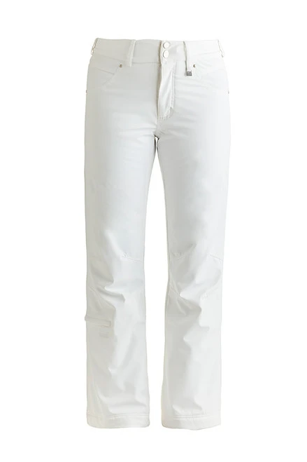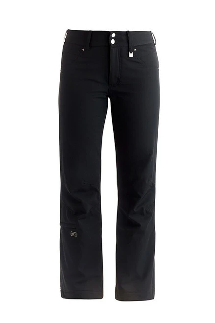 Mid-rise, jean style 4way stretch insulated pant with internal adjustable waist, articualted knees and zippered pockets on back and lower leg. Waterproof/Breathable rating 20/20.