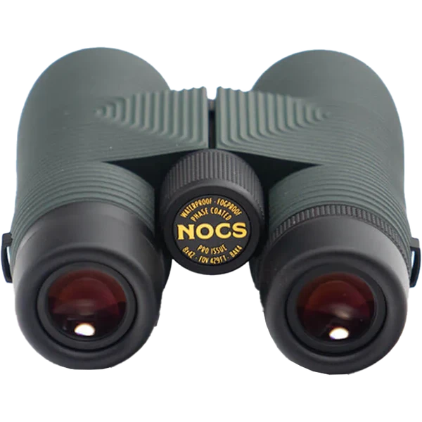 Pro level performance from NOCS. An unrivaled ultra wide field of view with true edge to edge clarity, multilayer phase-correction coatings applied to the Swiss-designed prism, and a close focus of less than 2M (6ft.), these binoculars provide a wide, rich, color correct image, matching the light of the outside world inside the optics. Not to mention these are fully waterproof and fogproof, great for birding, wildlife viewing, and rugged enough to take just about anywhere!