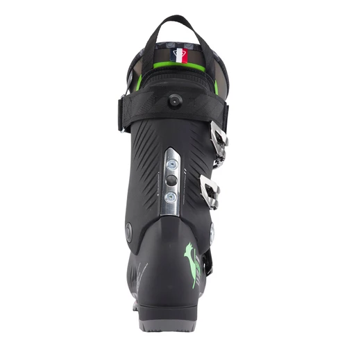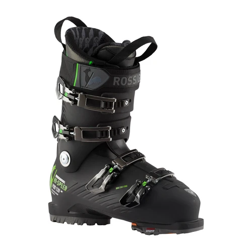 The Rossignol Hi Speed Pro 120 MV Ski boots are a new design for mid-volume feet with a 100-millimeter last. New for this season, the Hi- Speed series was designed for those skiers looking for the power and precision of a race boot but with a slightly softer 120- flex that provides a seamless interface between boot, binding and ski integration. Let’s start with the inside of the boot with a custom fit heated liner that can be molded fit to fit your foot like a glove from a boot fitter. It has a redesigned heel pocket that keep your heel lock and loaded into place and keeps it there for maximum control. The Shell has an adjustable forward lean and flex features to help dial in your proper stance and alignment for more precise power and carving capability. An Asymmetrical dual cuff allows for easy entry and exit into the boot, regardless of how cold or warm the temperatures are. Thinner buckles also make it easier to adjust and manipulate even with your gloves or mittens on. A Gripwalk sole ensures you will have great traction on those icy boot packs to that secret powder stash or long parking lot walks to your favorite lift to start off your day. Hardcore skiers looking for power and precision and more effective edge-to-edge transfer should look no further than the Rossignol Hi-Speed Pro 120 MV Ski Boots.