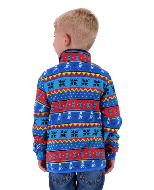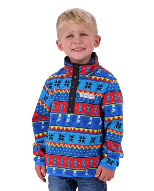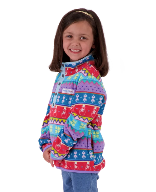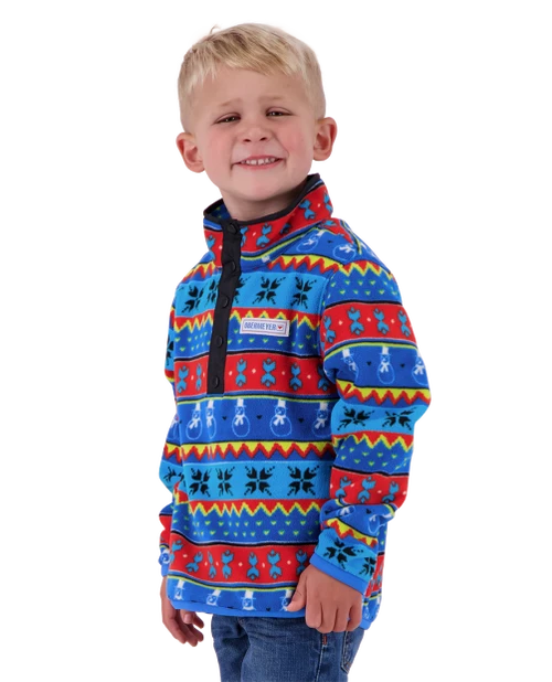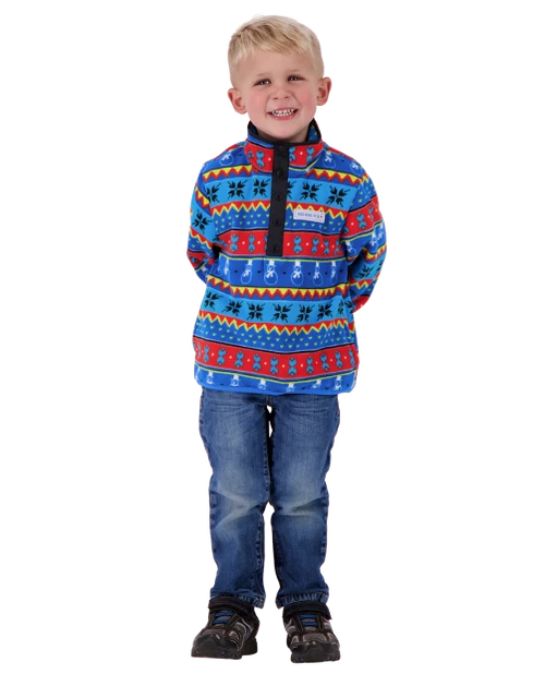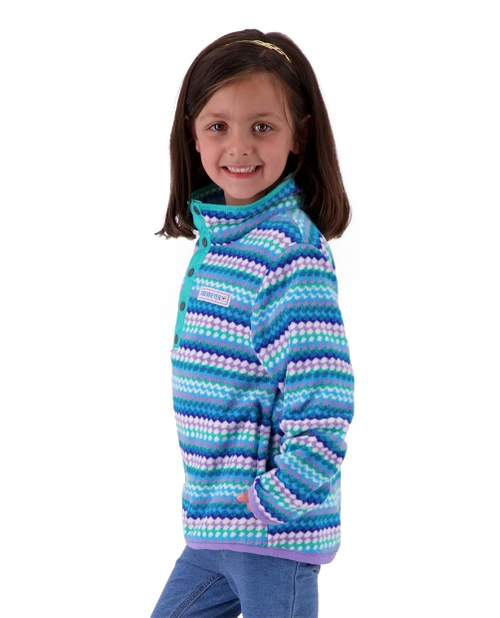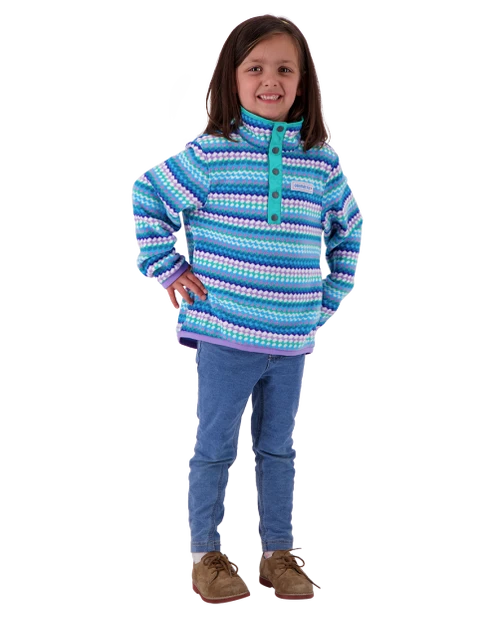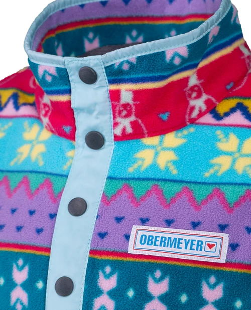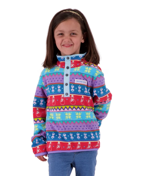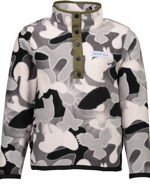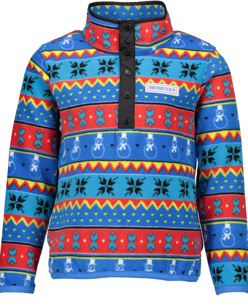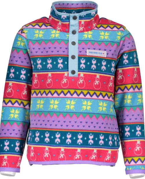 Bringing back an Obermeyer original. A true expression of fun, function, and style with one-of-a-kind prints and soft double-sided brushed fleece. All kids need a pullover fleece in their closet. Featuring hand pockets, snap collar, and anti-pilling fleece. The Boulder is an essential part of the wardrobe anytime of the year on and off the mountain.