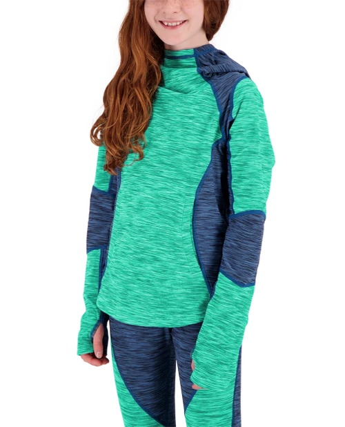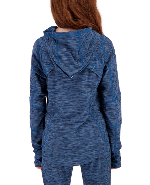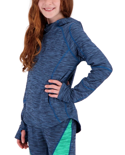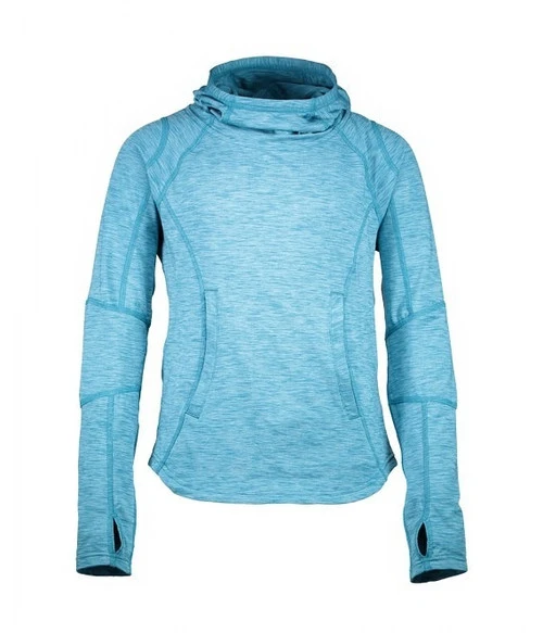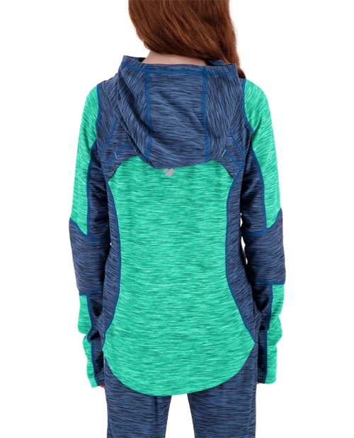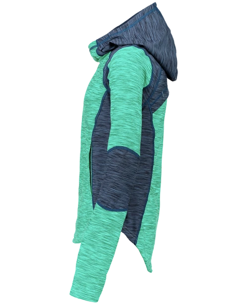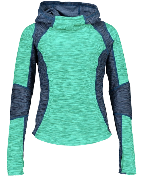 A super techy hoodie is something we’ve all been waiting for. Meet the Cora Hoodie… a two-tone polyester and spandex blend in a jersey knit. We gave it a shaped active fit and drop back hem which is flattering and yet has room-to-move. Kangaroo-style pockets with an integrated hood. A techy ergonomic back has mesh ventilation for thermal regulation when you’re running around.