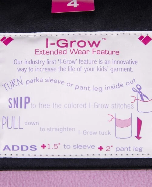 A little girl’s dream come true in a longer parka-length silhouette, featuring interactive sequins and satin pocket detailing that will be a stand-out on and off the mountain. Our innovative “I-Grow”™ Extended Wear System has built-in technology to increase sleeve length by 1 ½ inches to allow for re-use in your circle of family and friends. Our waterproof-breathable technology of HydroBlock® Sport 10,000mm lamination and our premium hydrophobic 220 gm insulation assures the ultimate in keeping her warm and dry. Features include a removable fleece-trimmed faux fur hood, reflective trims, integrated clips to retain mittens and gloves, integrated adjustable powder skirt, and working compass.