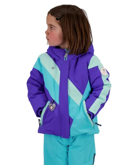 The Lissa jacket reflects a dynamic shout-out to adventurous design and color that echoes a kid’s limitless energy. Super durable fabric, removable hood, “I-Grow”™ Extended Wear System, reflective details for safe visibility, fleece-lined touch points, and an integrated powder skirt merge into an incomparable governess. Available in sporty color blocking and stripes and fashion-forward prints