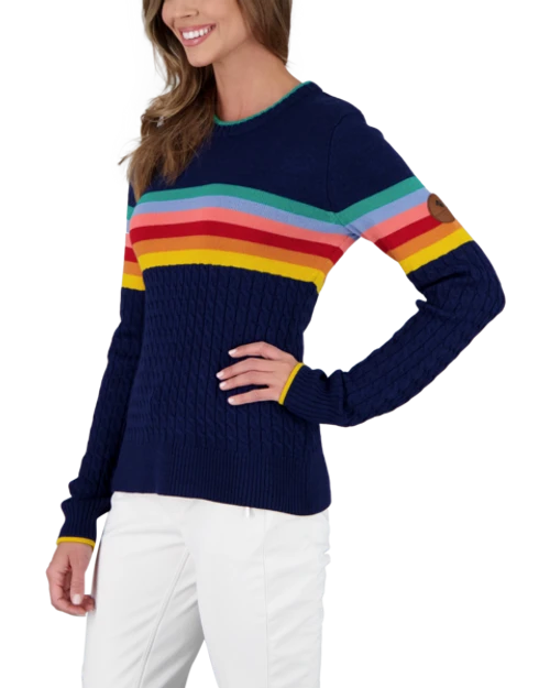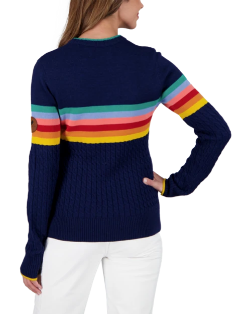 The Donna Crew is a cable knit merino blend with a classic retro design perfect for a night on the town or under your favorite ski jacket.