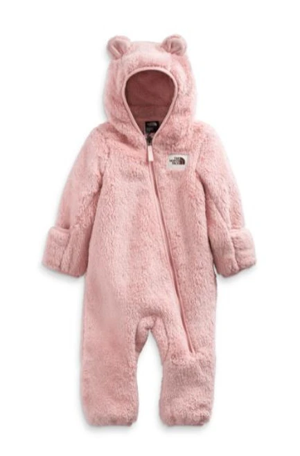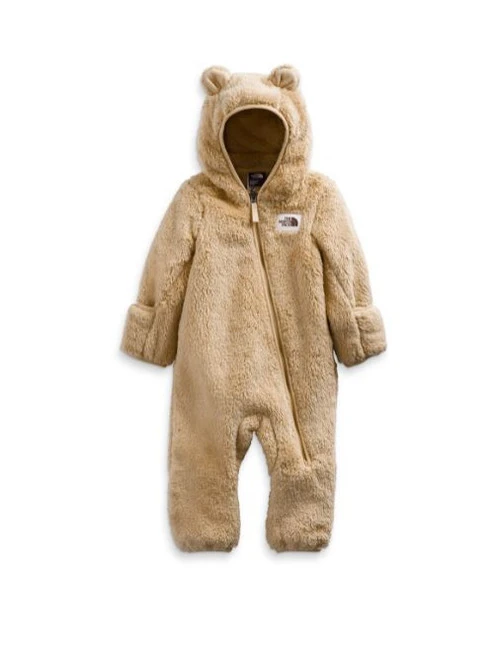 - Fold-over mitts at arm cuffs and booties at leg cuffs