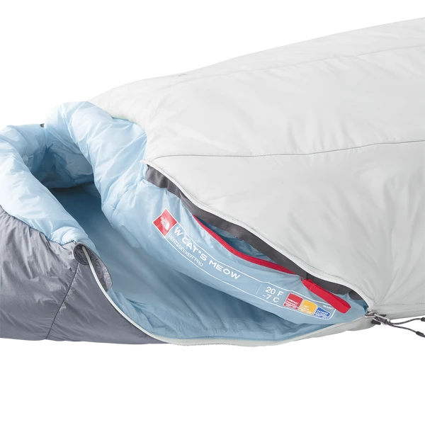 The Women’s Cat’s Meow Eco is a versatile 20-degree bag with a water-repellent finish, recycled shell fabric and a fully insulated hood. This modern design includes integrated shock cords that prevent sleeping pads from “wandering” during the night.