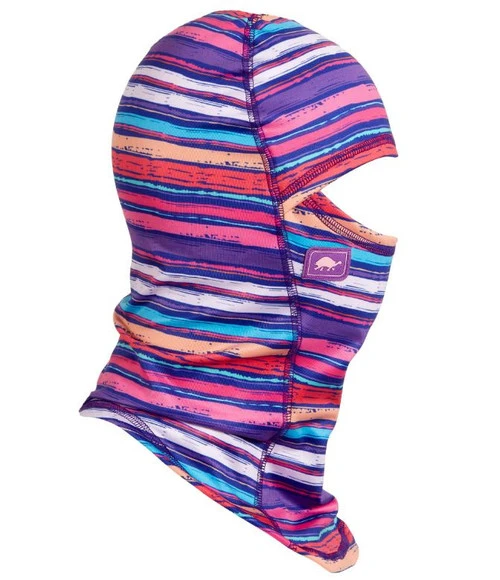 The high-performance Ninja balaclava was designed with kids in mind: A single-layer of our proprietary Comfort Shell™ material allows for full neck, ear and head coverage with partial face coverage and no moisture-trapping consequences. The fitted neck sits around the clavicle comfortably, with an extra scoop of fabric to tuck deep into the front of jackets and base layers. The “hinged” face mask provides full face coverage when worn up, and maintains comfort when pulled down below their chin. Breathable, moisture-wicking and weather-shielding, the Ninja is ideal for being worn under a helmet and goggles or simply underneath a warm hat while skiing, snowboarding and playing through all cold weather activities. The Comfort Shell™ fabric is perfect for active kids, bringing technology that combines 4-way stretch, moisture-management, anti-microbial properties and UPF 50+ protection, all in a stylish, fun and pocket-packable package
